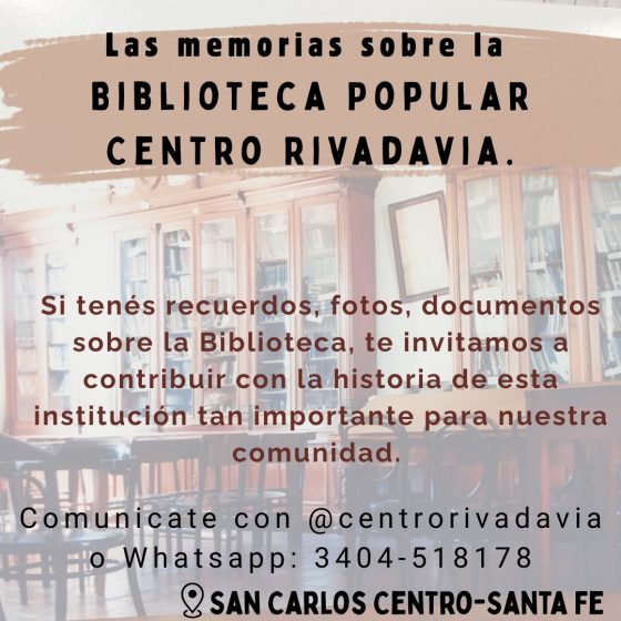 La investigadora indicó que los aportes pueden realizarse a través de las redes sociales de la Biblioteca Popular Centro Rivadavia, que funcionan como canal de difusión del proyecto, así como mediante el contacto directo con ella.