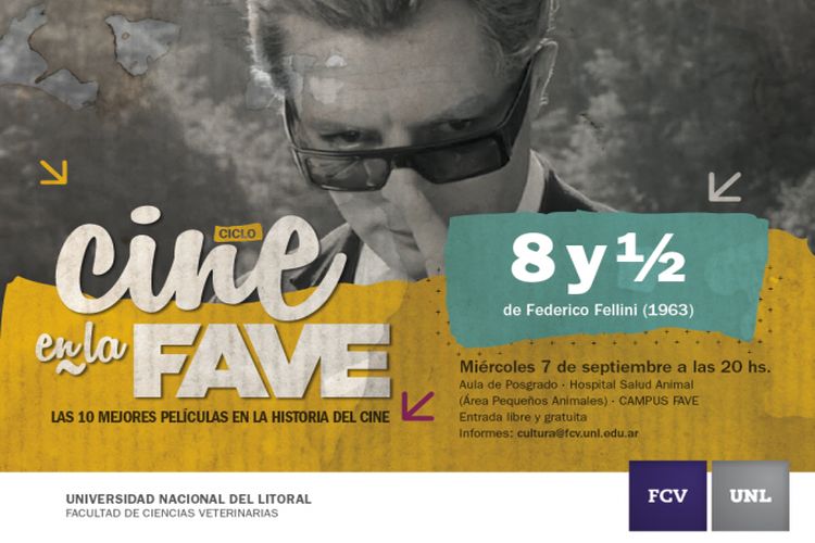 Con la proyección de la película “8 y ½”, de Federico Fellini, el miércoles 7 de septiembre a las 20 hs. inicia el nuevo ciclo “Cine en la FAVE”. La entrada es gratuita. Todos los films serán presentados por profesores del Taller de Cine UNL.