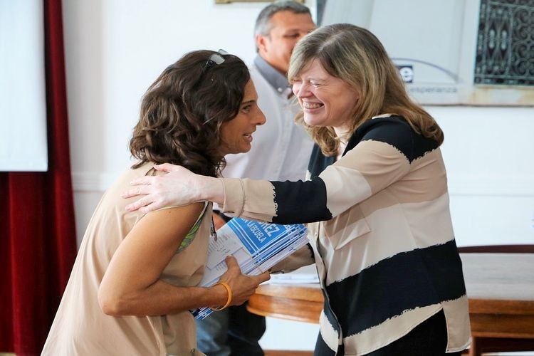 La intendente municipal Ana María Meiners junto a las representantes del Ministerio de Educación; Supervisora de Escuela Primaria Gladis Engler y Supervisora de Escuela Pirmaria Sección “D” Silvia Zerbatto y los secretarios de su gabinete, procedieron a la entrega de material didáctico a los establecimientos escolares que incorporan el “deporte ciencia” en la planificación curricular.