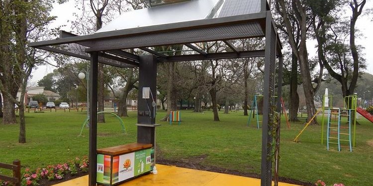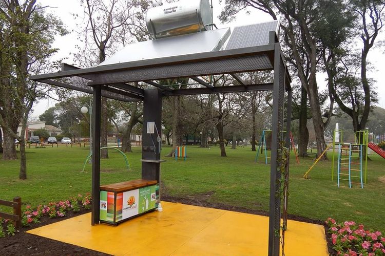 El equipo ubicado en la Plaza 27 de Septiembre, permitirá generar un sitio de recreación al aire libre que permitirá ofrecer agua caliente para tomar mate y servicios energéticos para la recarga de celulares y computadoras para el público en general.