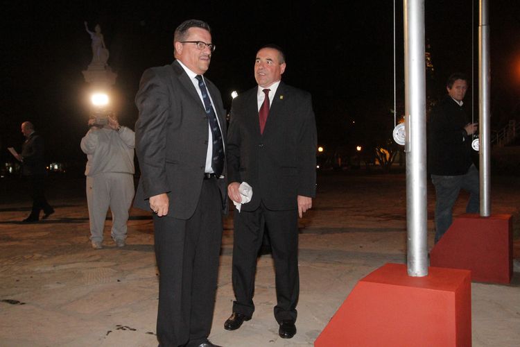 Sobre el final la comuna local llevó a cabo la inauguración de una obra para conmemorar el acontecimiento. Frente a la fuente que se construyó para rememorar el primer hermanamiento con el distrito de Goms, se inauguraron 3 mástiles que serán ocupados por las bandera de Brig-Glis, Goms y San Jerónimo Norte.