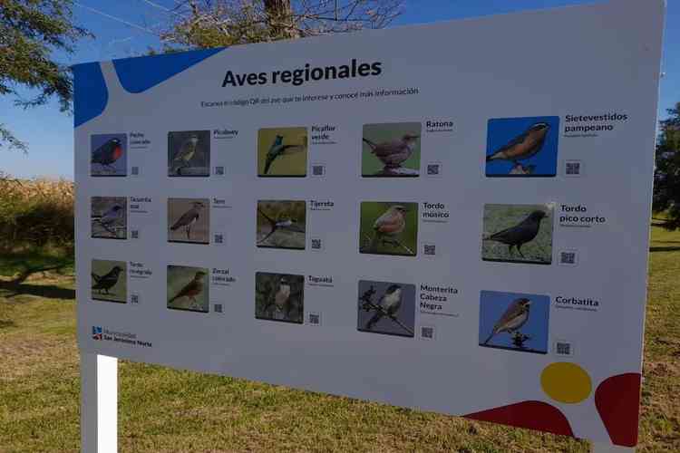 La cartelería sobre aves regionales cuenta con una imagen y un código QR para acceder a más información sobre la especie.
