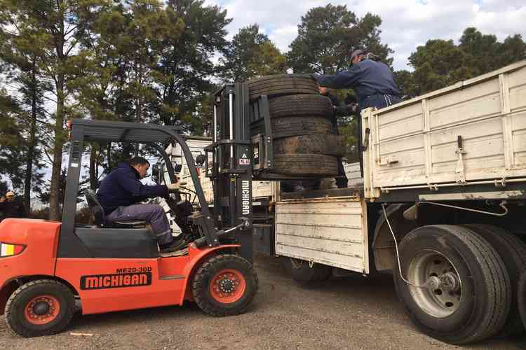 En el complejo ambiental F.I.M.A., representantes de la firma Worms acompañados por el vicepresidente comunal Damián Franzen y el director de Gestión Ambiental Ing. Mario De Piante, presenciaron la primer entrega de neumáticos fuera de uso a la empresa que se encargará del tratamiento y reciclado de este tipo de residuos.