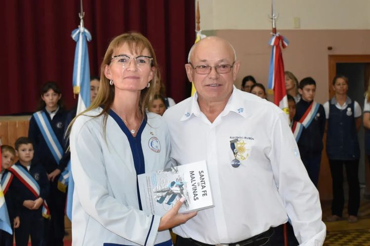 El emotivo momento contó con palabras alusivas de la docente Ana Kleing, seguidas por las del Veterano pilarense Rubén Riedweg. Luego se entregaron libros “Santa Fe en Malvinas” de parte de los Veteranos a las instituciones educativas de nuestro pueblo y la Biblioteca Popular.
