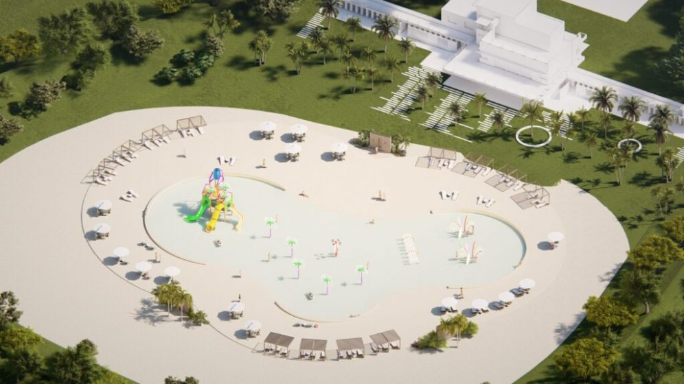 Los juegos acuáticos serán un mangrullo con toboganes, chorros de agua y zonas lúdicas diseñadas para la diversión segura.