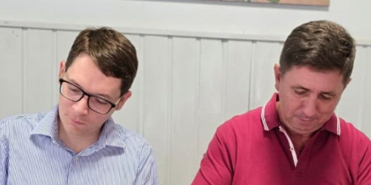 En una visita a Humboldt, el senador Rubén Pirola firmó junto al presidente comunal Martín Puchi Quiróz el convenio para la construcción del natatorio número 17 del Programa Deporte y Recreación. La obra se emplazará en la Unión Vecinal Colonia La Nueva y apunta a fortalecer el acceso al deporte