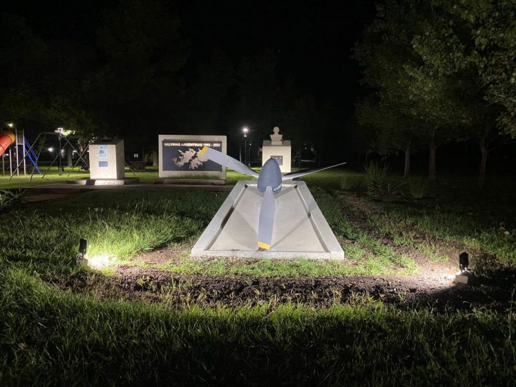 Matilde renovó la iluminación del monumento a Malvinas y rinde homenaje a su héroe local