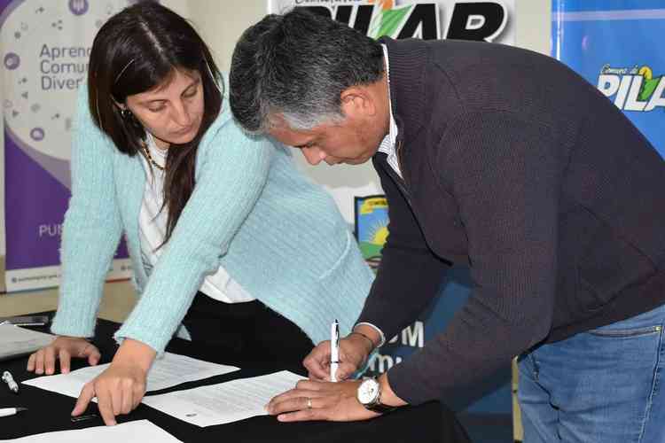 Esta semana en el SUM Comunal de Pilar el presidente comunal Diego Vargas firmó un convenio con el Ministerio de Desarrollo Social ante la presencia de la Directora Provincial de Desarrollo Territorial del interior de la provincia de Santa Fe, Maia Bonelli.