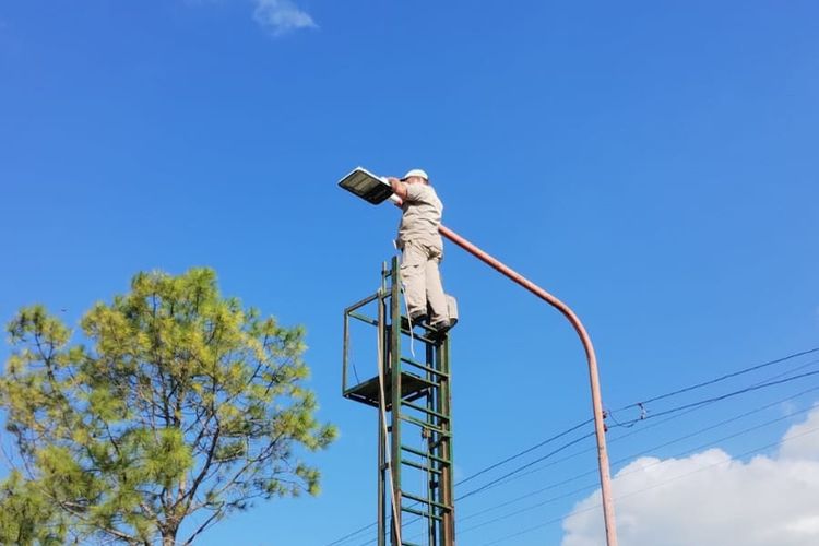 Comenzó la clocación de luminarias LED en el ingreso de Grütly